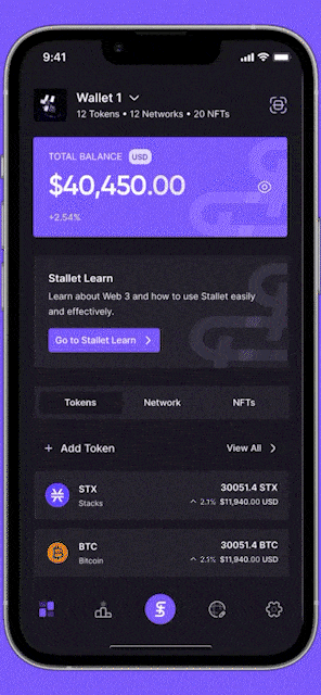 With Stallet, users can send, receieve, swap and bridge tokens between diffferent networks, manage NFTs and most importantly, learn crypto and web3.